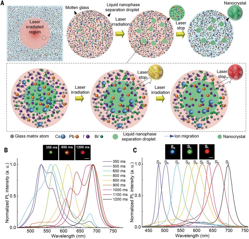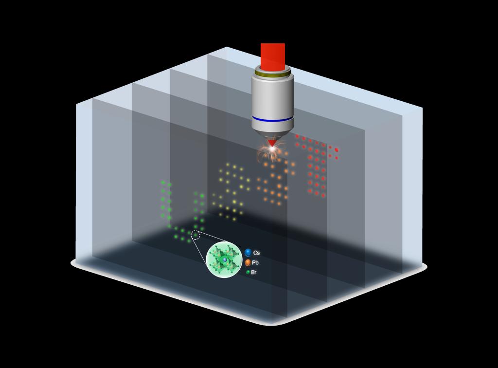 The researchers of the Institute of Photonic Chips (IPC) led by Professor Gu Min at University of Shanghai for Science and Technology (USST), in collaboration with Professor Jianrong Qiu’s team from Zhejiang University and Dr. Dezhi Tan’s team from Zhejiang Laboratory, have made a major breakthrough in the holographic display based on nanomaterials. On January 21, they published their research titled "Three-dimensional direct lithography of perovskite nanocrystals" in Science. In this work, a novel stereoscopic color display has been realized by controlling the three-dimensional (3D) semiconductor quantum structure inside a colorless and transparent glass.
