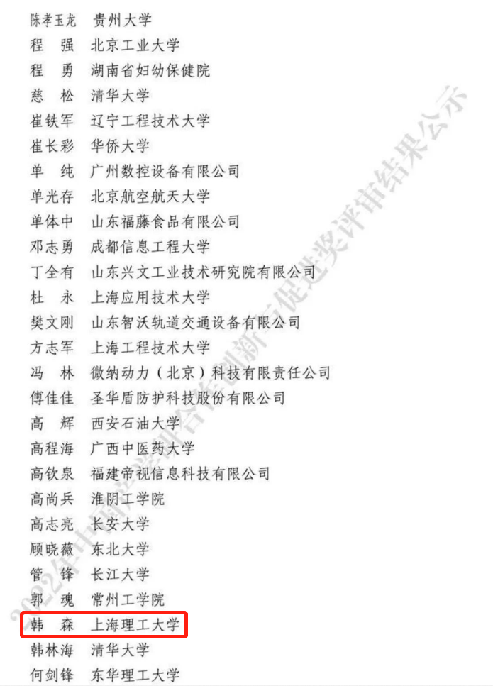 Recently, the results of the 2022 China Industry-University-Research Cooperation Innovation and Promotion Award were announced, and Professor Han Sen, a team of academician Zhuang Songlin, won the "Industry-University-Research Cooperation Innovation Award".