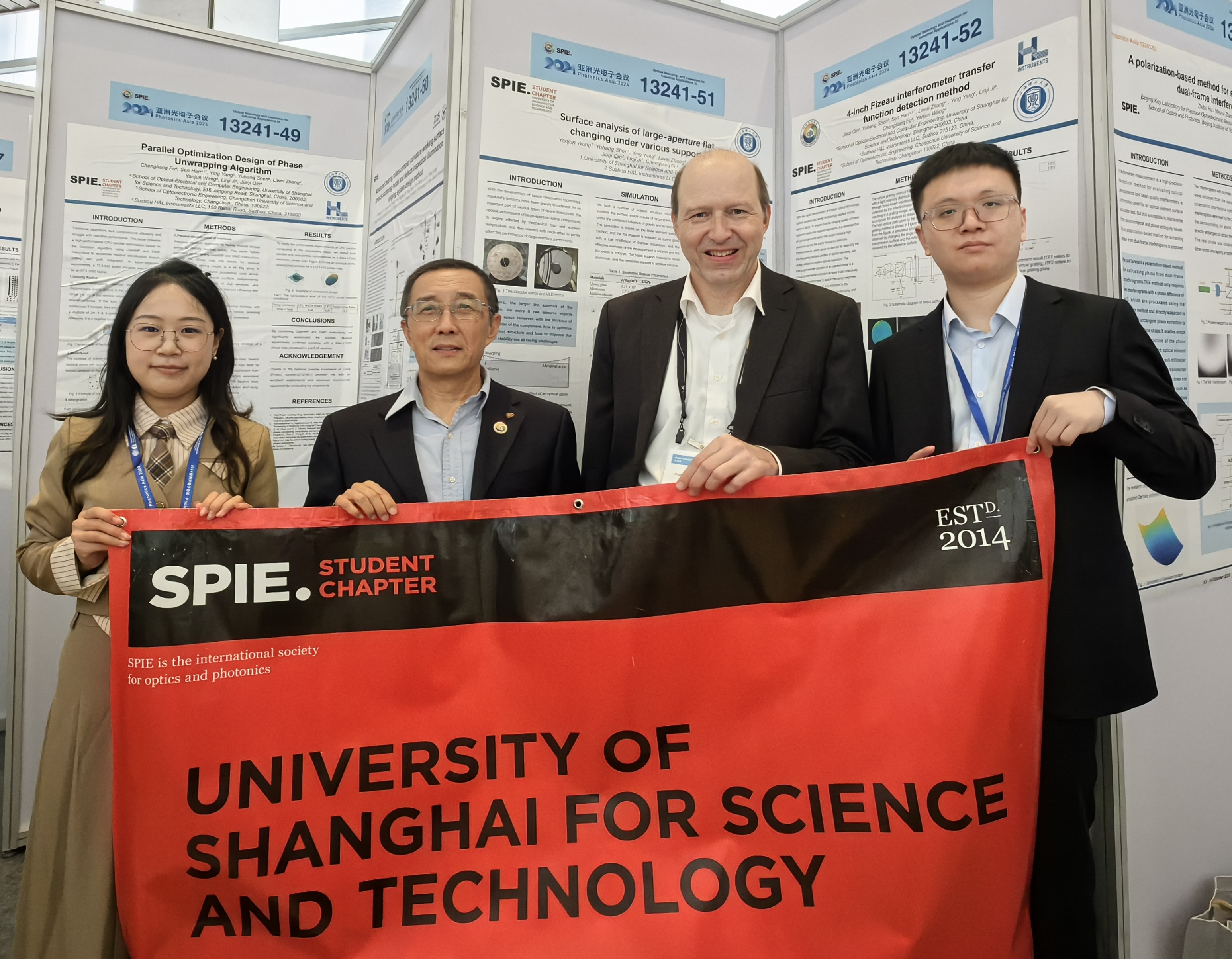 Poster presentation of SPIE Student Club (from left: Yang Ying, Professor Han Sen, Dr. Gerd Ehret, Shen Yuhang)