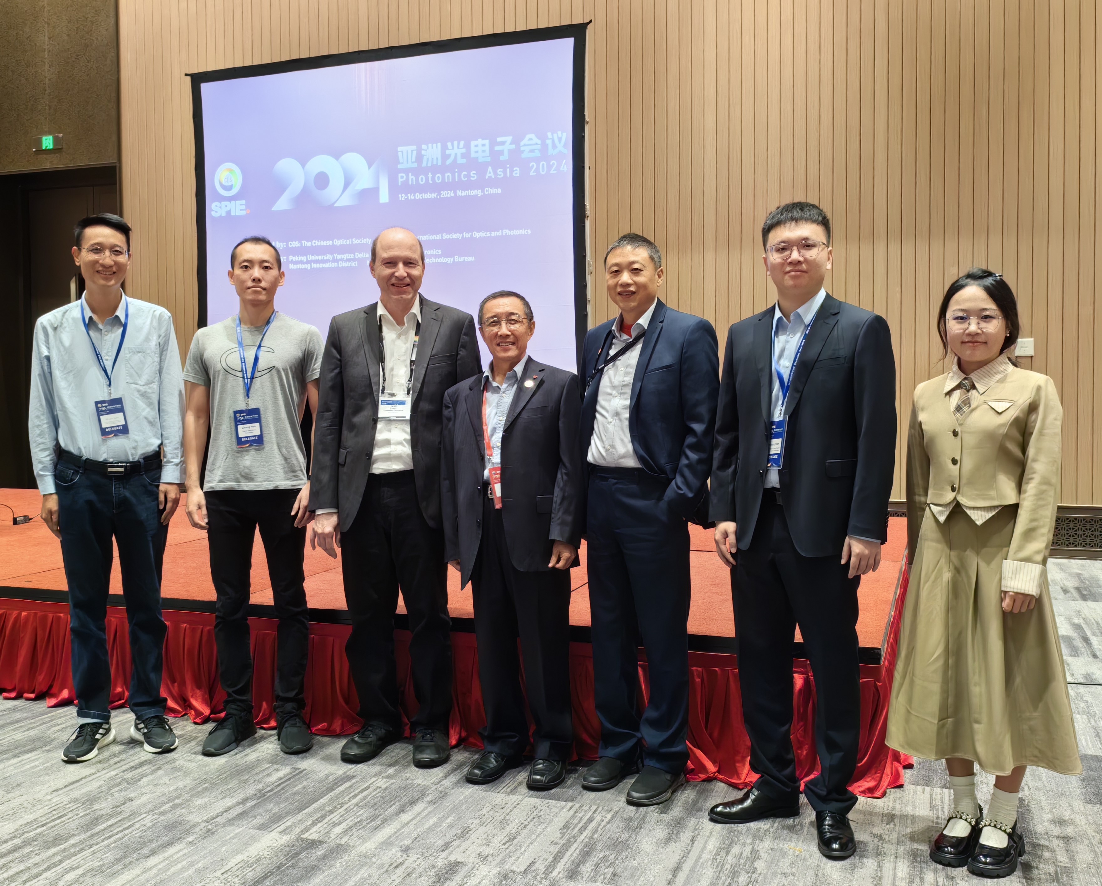 On October 12-14, 2024, the 2024 Asia Photonics Conference, co-hosted by the Chinese Optical Society (COS) and the International Society for Optics and Photonics (SPIE), was successfully held at the Nantong International Conference Center. Professor Han Sen, the advisor of the SPIE Student Chapter at USST, and members of the executive committee, including Shen Yuhang, the president, Yang Ying, the vice president, and Liu Shigeng, the secretary, attended the conference.