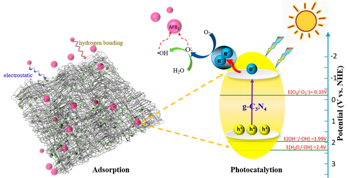 FIG. 2 Schematic diagram of electrospun film with "adsorption-photocatalysis" synergic function applied to AFB1 degradation